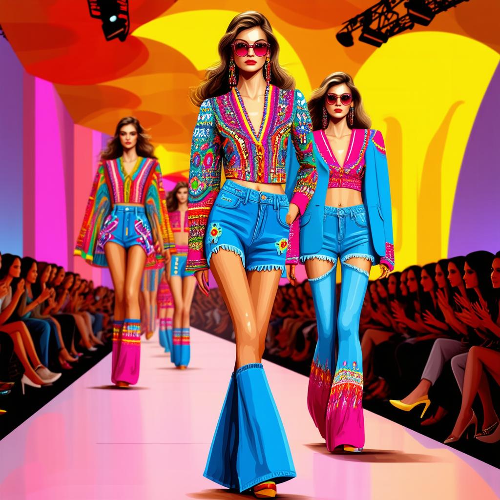 Lata 70. to okres współpracy mody z popkulturą. Moda uliczna zyskała na znaczeniu, a kolorowe tkaniny zaczęły dominować. Wzrost produkcji odzieży świadczył o rozwijającym się rynku i rosnącym zapotrzebowaniu.